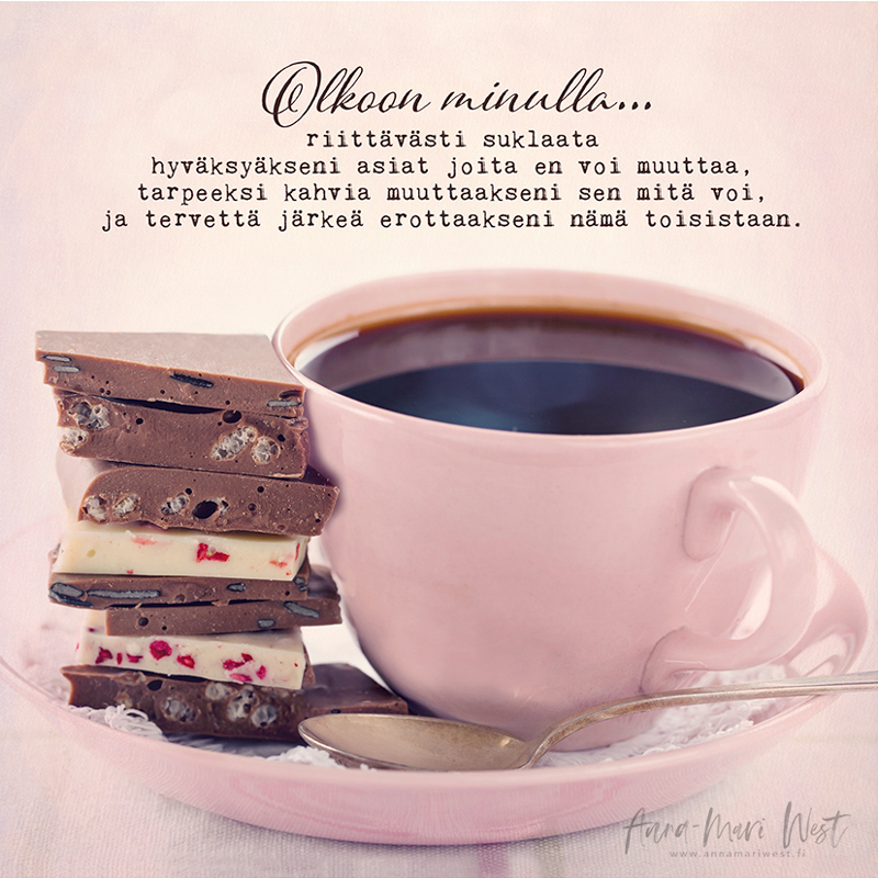 riittävästi suklaata hyväksyäkseni asiat joita en voi muuttaa,