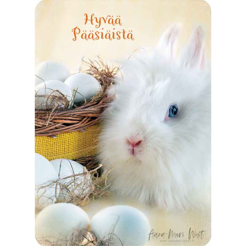 Postikorttimuotoinen kortti, jonka kulmat on pyöristetty. Kortin materiaali on mattakartonki, ja koko 10,7 x 15 cm.. Vesileimaa / logoa ei ole painetussa kortissa.