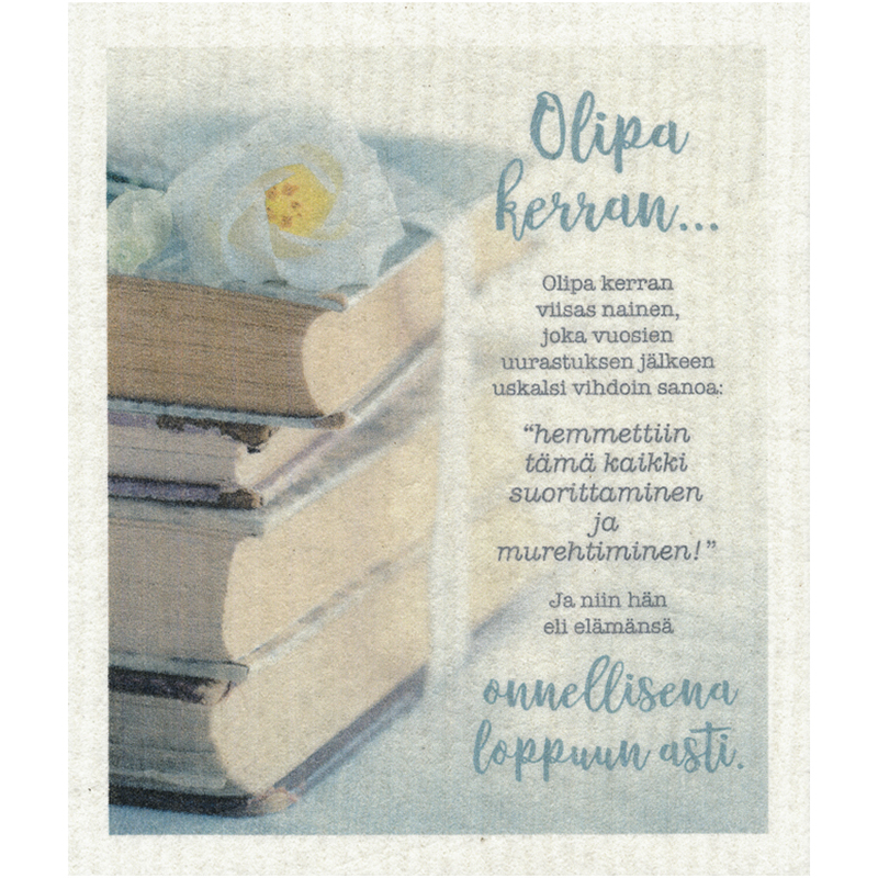 Kotimainen tiskirätti, jossa valokuva ja mietelause. Kaunis ja käytännöllinen pieni lahja arkeen.