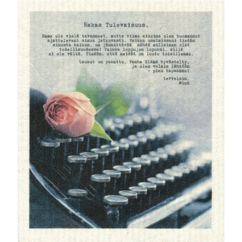Kotimainen tiskirätti, jossa valokuva ja mietelause. Kaunis ja käytännöllinen pieni lahja arkeen.